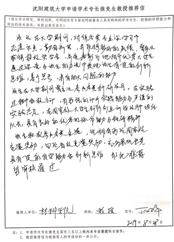 材料学院关于推荐2020年免试研究生的公示